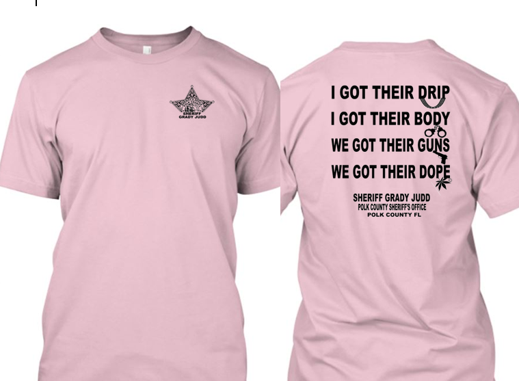 Polk County FL Sheriff Grady Judd T-Shirt. I got their drip; I got their Body; We got their guns; We got their Dope comment on Aug 22, 2025. Shirts are 100% preshrunk cotton. Free Shipping